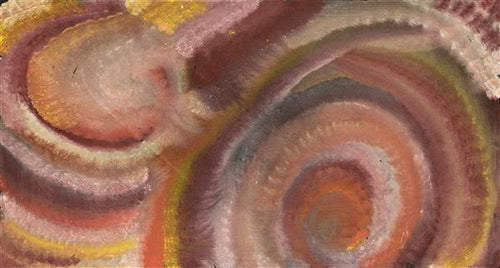 The Kulumindini Artists celebrate connection to Country in their explorations of the environment, which often focus on the effect shifting seasons has on the desert’s flora and fauna. The playful use of colour, defined lines, and measured dot-work that characterises much of the work from the Kulumindini studio evokes the legacy of print-making and textiles that once dominated this community. Otherwise, the group is notable for its breadth of variety, with each artist developing a singular visual language that speaks to their individual experiences before they came together to start painting as a collective.